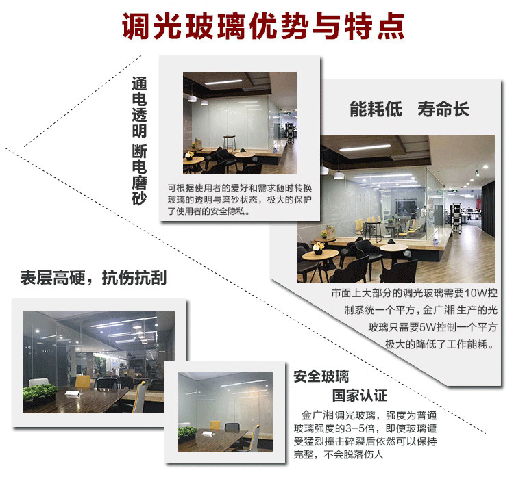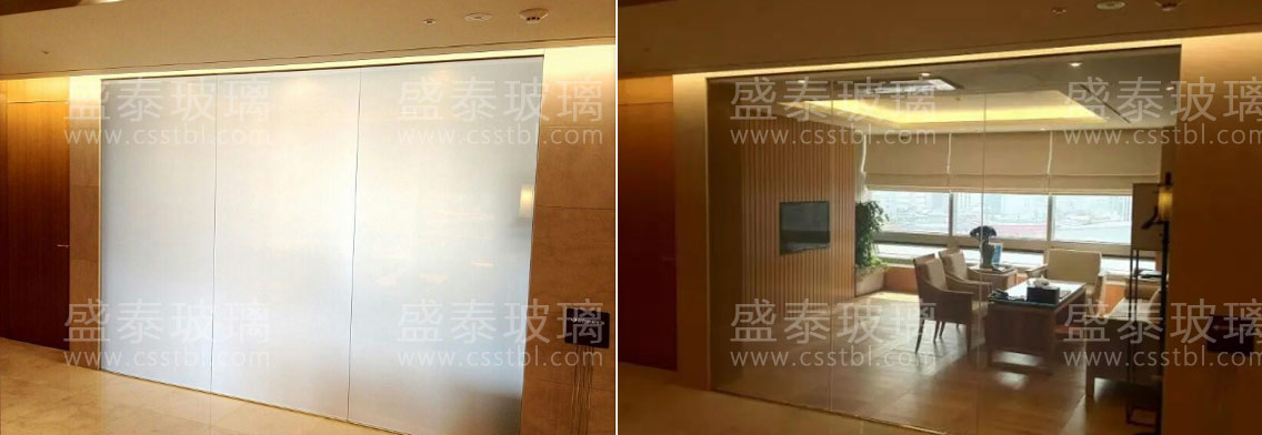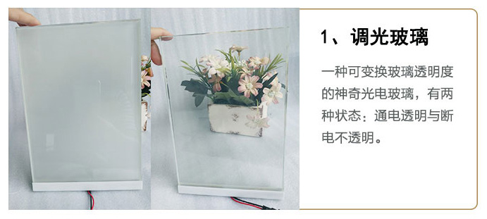 产品定义调光玻璃是一款将液晶膜复合进两层玻璃中间,经高温高压胶合后一体成型的夹层结构的新型特种光电玻璃产品。使用者通过控制电流的通断与否控制玻璃的透明与不透明状态。玻璃本身不仅具有一切安全玻璃的特性,同时又具备控制玻璃透明与否的隐私保护功能,由于液晶膜夹层的特性,调光玻璃还可以作为投影屏幕使用,替代普通幕布,在玻璃上呈现高清画面图像。